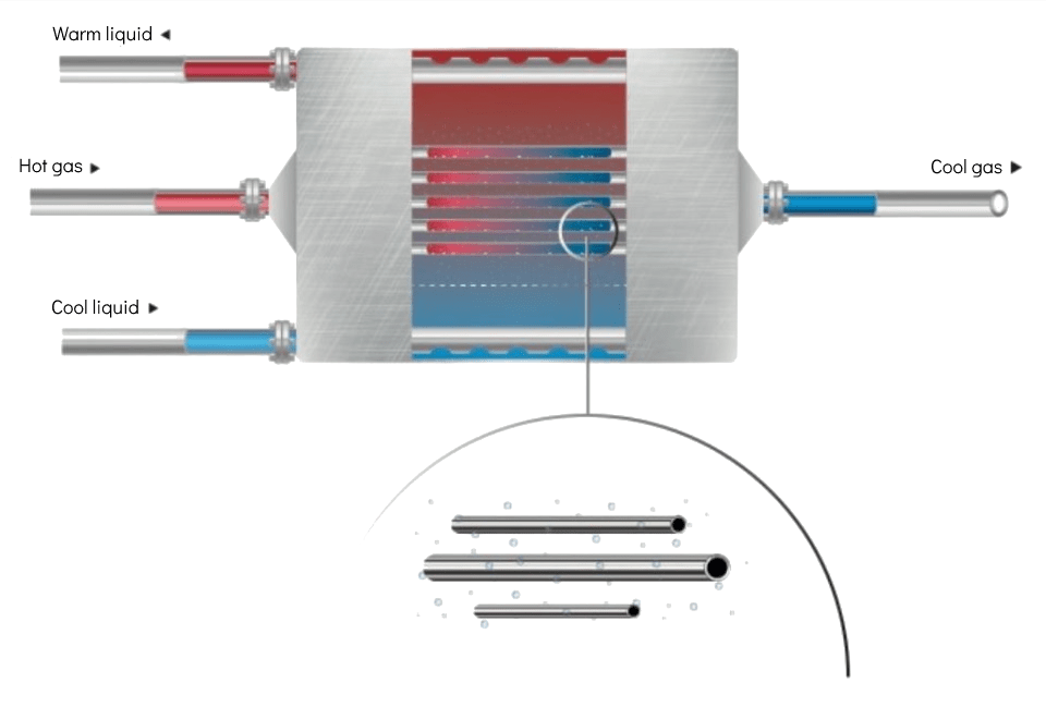 Direct seawater cooling is often problematic because of the scale produced on the tube-walls by the heated seawater. With the KLAREN self-cleaning fluidized bed heat exchangers, the scaling issue can be solved. Direct seawater cooling has already been successfully demonstrated in seawater desalination plants using self-cleaning heat exchangers. Applications for the self-cleaning heat exchanger can be a closed-loop cooler or direct seawater cooler for high pressure gas.